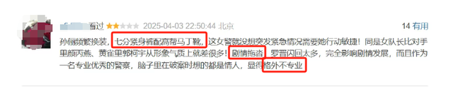 剧中的她全程冷脸办案,七分紧身裤配马丁靴的造型,被网友吐槽“怕是抓贼跑两步就得鞋跟卡井盖“”更别说追凶办案了,而且刑侦过程更是回忆片段满天飞。